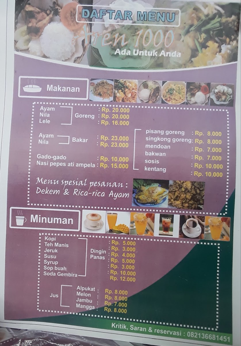 Welcome to Aren 1000, a delightful café nestled in the tranquil surroundings of Petung, Tempur, Keling, Jepara Regency, Central Java. This hidden gem offers a serene escape from the hustle and bustle of city life, making it the perfect spot for anyone looking to unwind amidst nature.