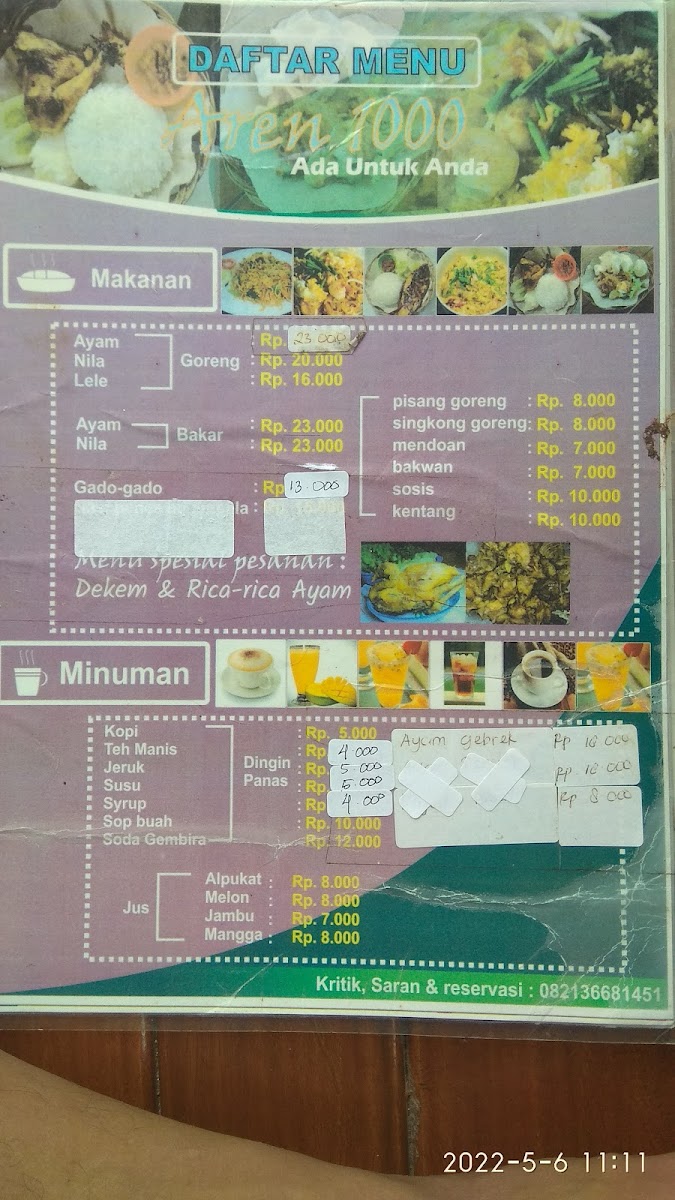 Aren 1000’s menu is thoughtfully curated to cater to a variety of tastes while remaining affordably priced. Popular dishes include their delicious mendoan and mouthwatering pisang goreng, which are ideal for snacking as you soak in the refreshing ambiance. The crispy yet tender mendoan is a must-try; it's addictive in the best way! Adding to the charm of your dining experience, you can also find bakwan that complements the café's cozy setting perfectly. For something heartier, they offer filling main meals, ensuring that there’s something for everyone.